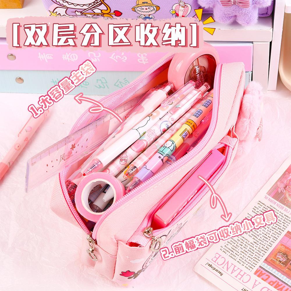 Cartoon Pattern Pencil Case Student Cute Canvas Pencil Case Large Capacity Primary and Secondary School Students Pencil Case