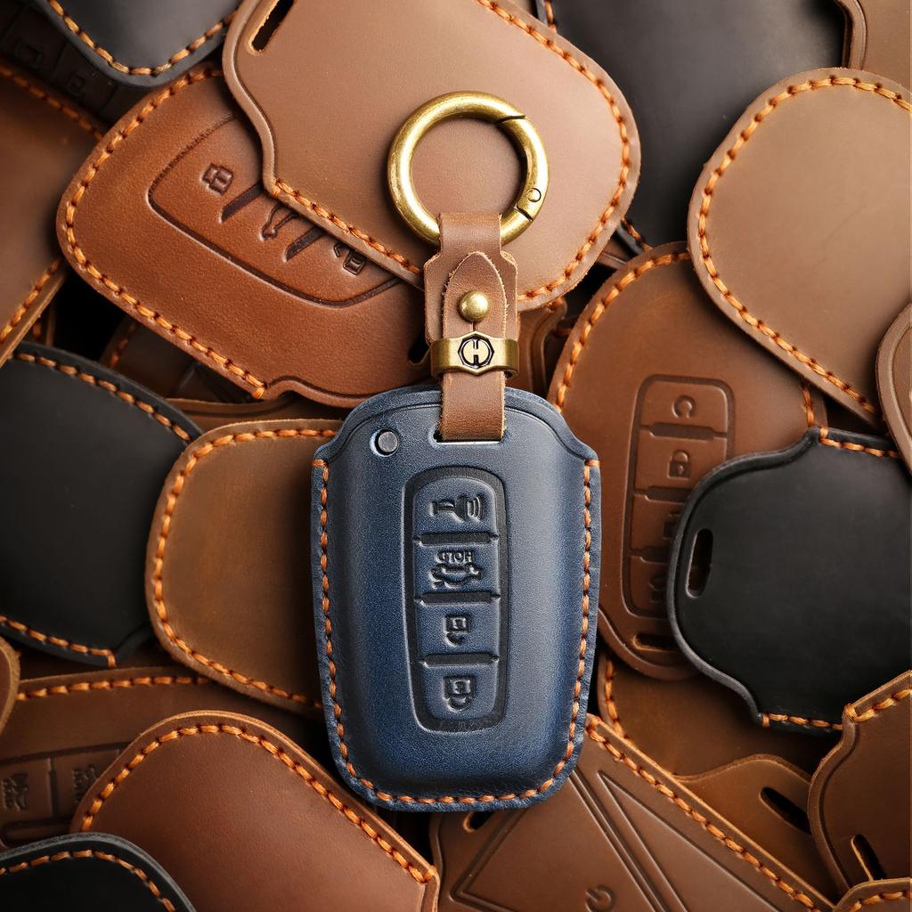 Retro Key Cover Is Suitable for Hand-stitched Real Cowhide Key Protection Clasp for Old Kia Cars