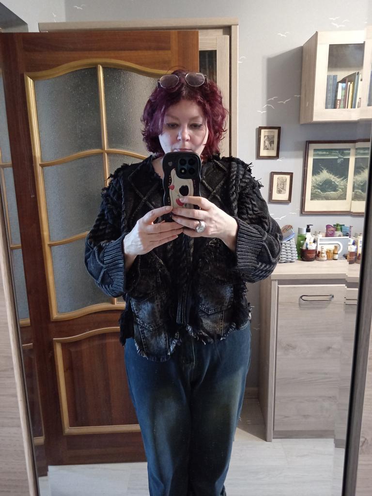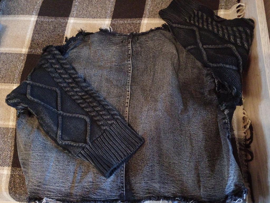 Women Pullover Long Sleeve Irregular Do Old Patchwork Pockets Vintage Washed Denim Sweater