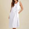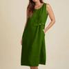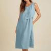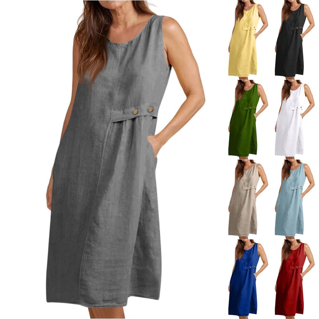 Women's Fashionable Solid Color Round Neck Button Pocket Loose Sleeveless Vest Dress