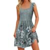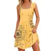 Women's Summer Casual Square Neck Dress With Pockets Cute Sleeveless High Waisted A-Line Vest Midi Dress