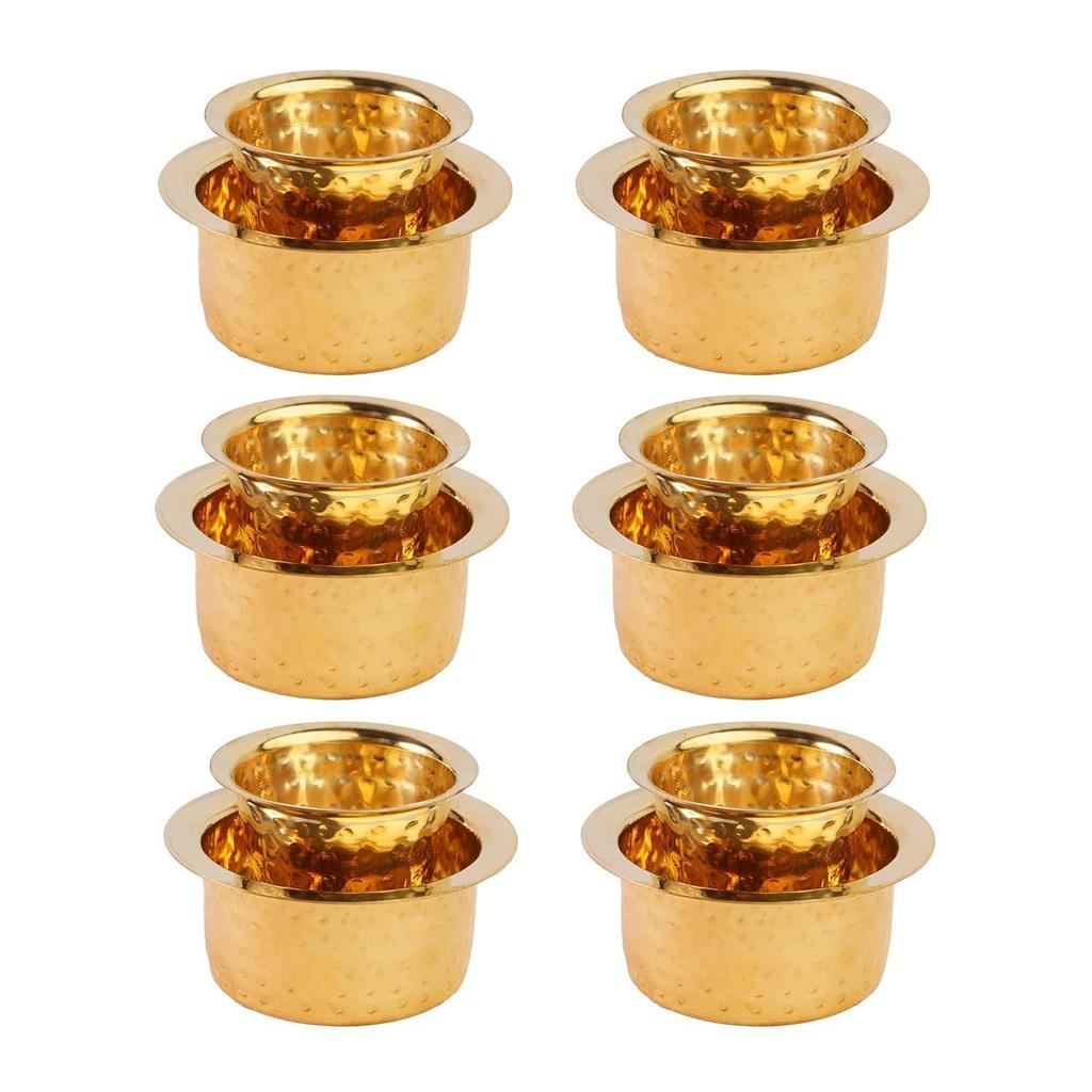 Brass Coffee Cup Dawara/Dabara & Tumbler for Serving Filter Coffee/Tea/Traditional Kumbakonam Brass Dabara - | Hammered Matt - 150ml (Set of 6)