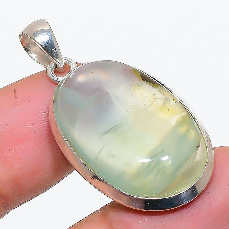 Prehnite Gemstone Handmade 925 Solid Sterling Silver Jewelry Pendant 1.50" SU-10291