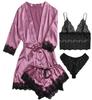 Experience ultimate comfort and elegance with this 4-piece summer pajama set designed for women. Crafted from high-quality polyester with a luxurious non-stretch satin finish, the set includes a delicate lace camisole, a chic robe, matching shorts, and pajama pants. Perfect for warm nights, each piece offers a lightweight and breathable feel while exuding a sense of effortless style. Indulge in the perfect blend of comfort and sophistication for your sleepwear collection.