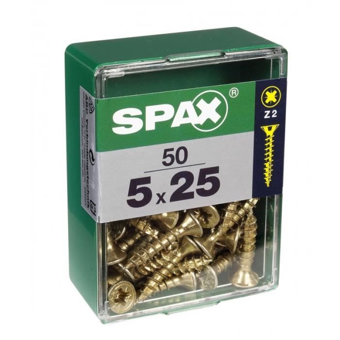 Vis - SPAX - Tête fraisée - Acier - Diam.5 mm - Long.25 mm - Lot de 50
