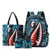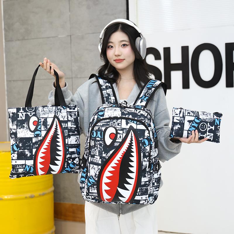 Cute Shark Set Schoolbag New Personalized Creative Men's and Women's Backpack Junior High School Campus Three-piece Backpack
