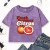 Fresh Summer Citrus Orange Printed Women Washed T Shirt Cotton O-Neck Streetwear Summer Y2K T-Shirts Clothes