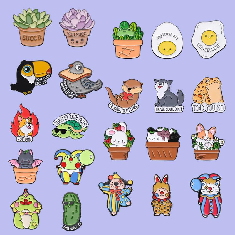**Colorful Cartoon Animal and Plant Themed Brooches: A Unique Fashion Accessory Set**