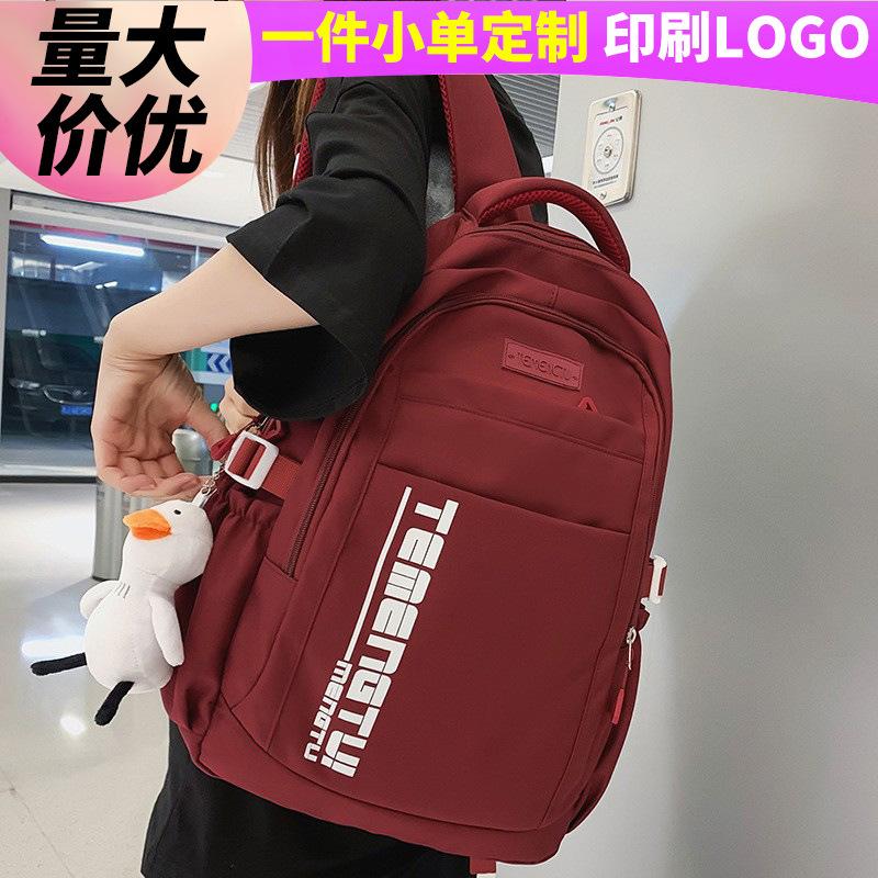 School Bag Junior High School Girls Burgundy Backpack Men College Students Middle School Students High Quality