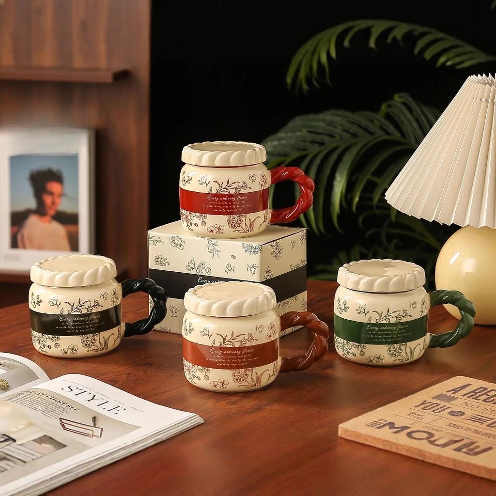 Retro Ceramic Cup with Lid Mug Souvenir Gift Cup National Trend Ins Flower Water Cup Girls Household Cup