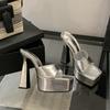 Super Long Legs Model Catwalk High Heels Summer New Thick Heel Square Head Cool Slippers