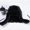 Rabbit Fur Cap Man Winter Genuine Fur Bomber Hat Windproof Warm Earmuffs Male Flat Grey/Black Russian Winter Rabbit Fur Hat