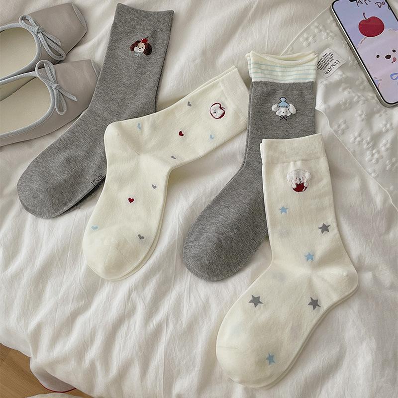 Cute Plush Female Cartoon Puppy Socks, Mid-calf Socks, Autumn Rolled-up Striped Pile Socks