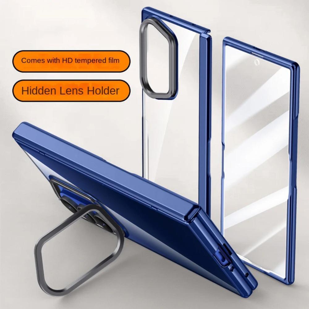 Transparent Privacy Screen Tempered Glass Protector Phone Case for Samsung Galaxy Z Fold7 All-inclusive Spring Hing Holder Cover