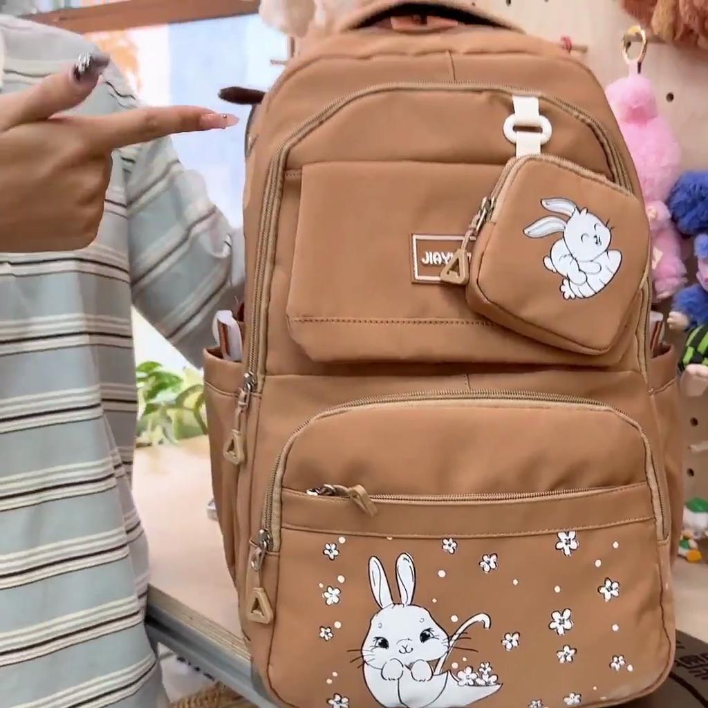 Cartoon Women's Backpack Large Capacity Student Schoolbag with Coin Purse