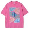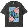 Feng Shui Minimalist Cartoon Printed Men's T-shirt Large Loose T-shirt Casual Retro Washed Short Sleeved T-shirt