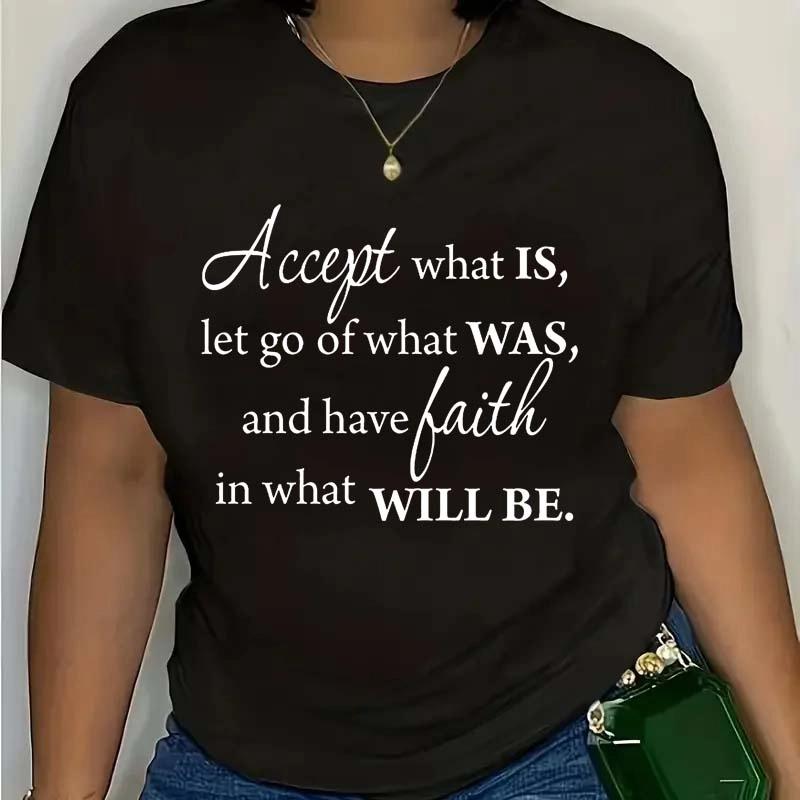 Women Plus Size Casual T-Shirt Summer Letter Printed T-shirt Casual Loose Round Neck Short Sleeve Tops Clothing Plus T-shirt