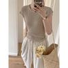 Fashion Summer Thin Ice Silk Women Knitted Sweater Short Sleeved Women's T-shirt O Neck Casual Simple Office Slim Fit Lace-up Elegant Hollow Out Top