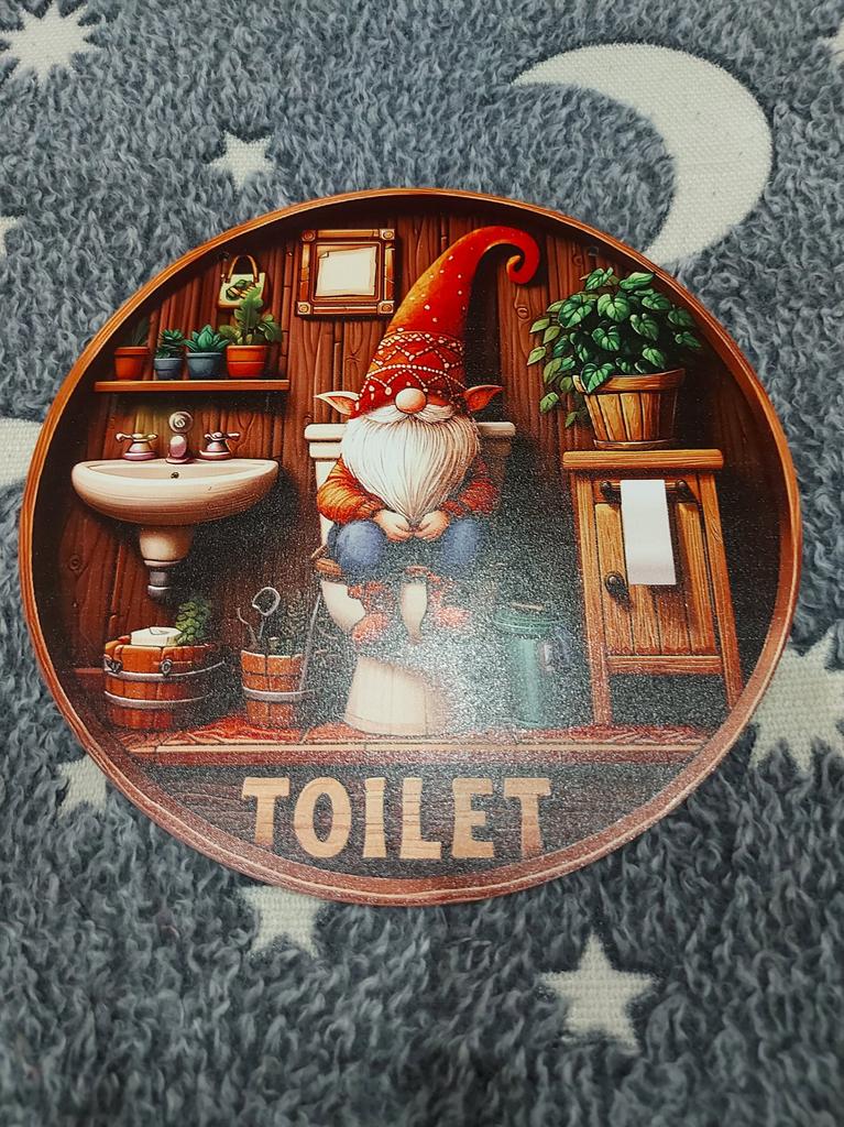 2D Vintage Gnome Toilet Wood Round Sign,Bathroom Wall Shelf Hanging Charming Home Decor,Window Fence Hanging Cute Wooden Board Painting,New Home Decor