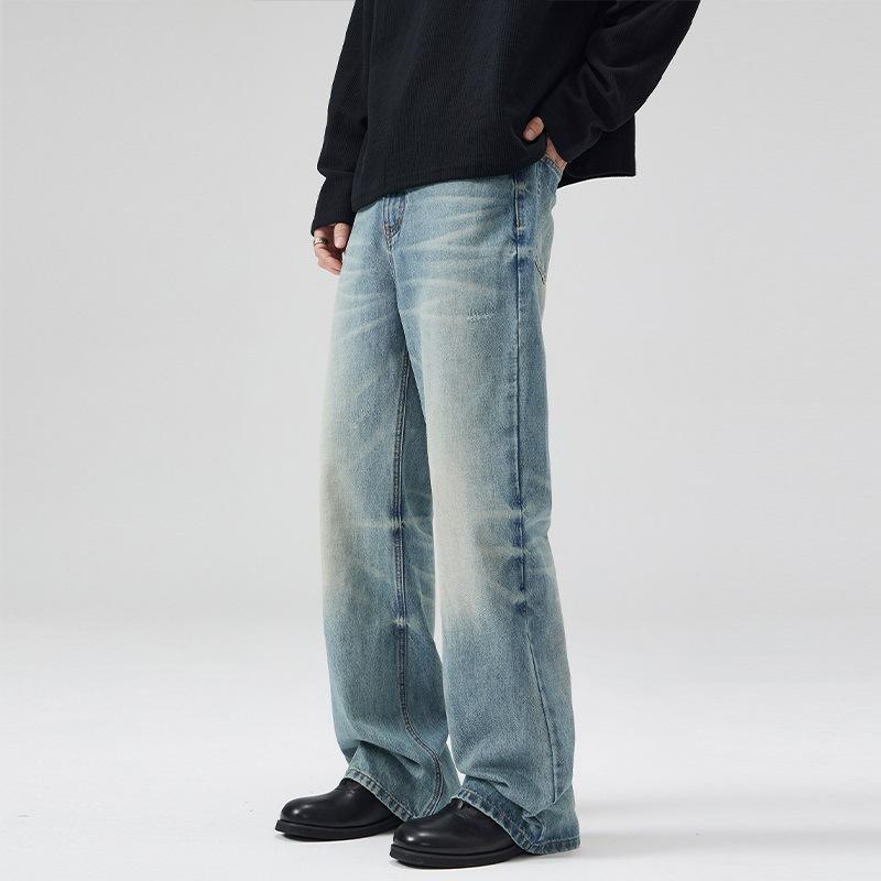 Spring and Summer American Retro Nostalgic Branch Jeans Men's Loose Straight A-line Trousers