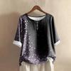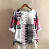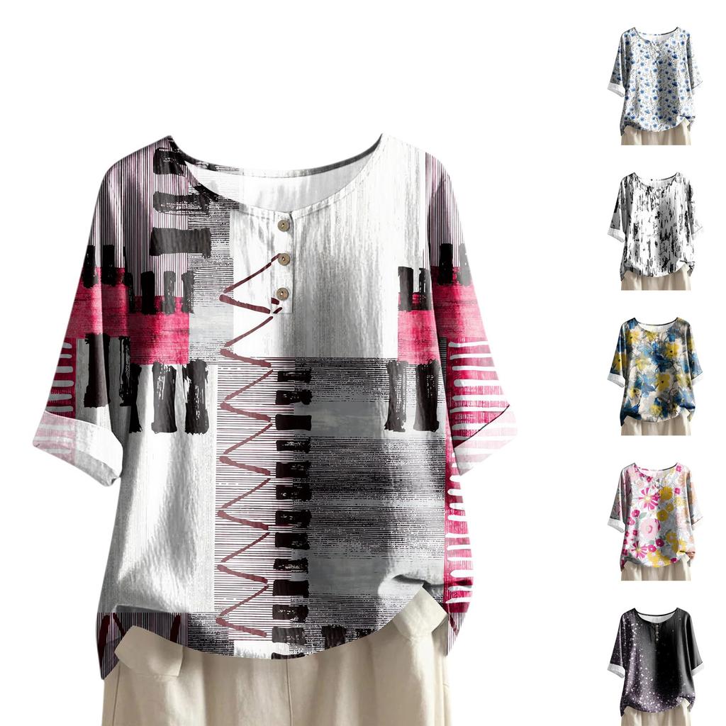 Women's Casual Mid-sleeve Round Neck Retro Floral Print Cotton And Linen Top