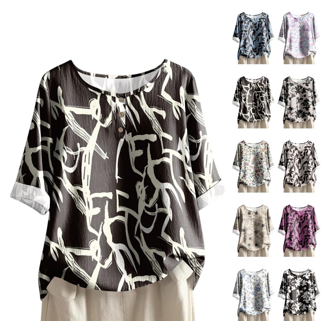 Women's Fashionable And Casual Shirt Half-sleeve Round Neck Print Cotton And Linen Blouse Top Features: 1.Material: Made of high quality material and suitable for everyday wear, made of soft fabric, polyester, light and comfortable, easy to dress up or take off, comfortable to wear all day long. 2. Occasion: This product is perfect for everyday, beach, outing, party, work, casual wear. 3. It can be given to friends, family, yourself, etc., it is the best choice for gifts 4. Wash with cold water, the size will not change much, if you have any questions when choosing, welcome to consult 5. Different monitors will have a little color difference, please don't mind Product information: Seasons: Four Seasons Material: Gender: Female Occasion: Everyday, Casual Sleeve Length:Half-sleeve Fit: fit Thickness: Standard Washing method: Hand wash in cold water, hang or dry You will get: 1 x Women's top