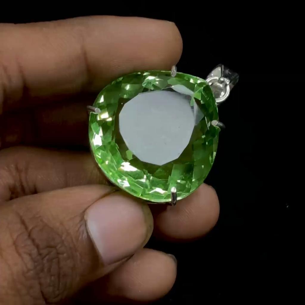 Gem-Verified Green Topaz 925 Sterling Silver Pendant 94.85 Ct Gems Lab Created My-376-k
