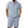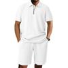 Men'S Solid Color Casual Collar Short Sleeved Shorts Two-Piece Set