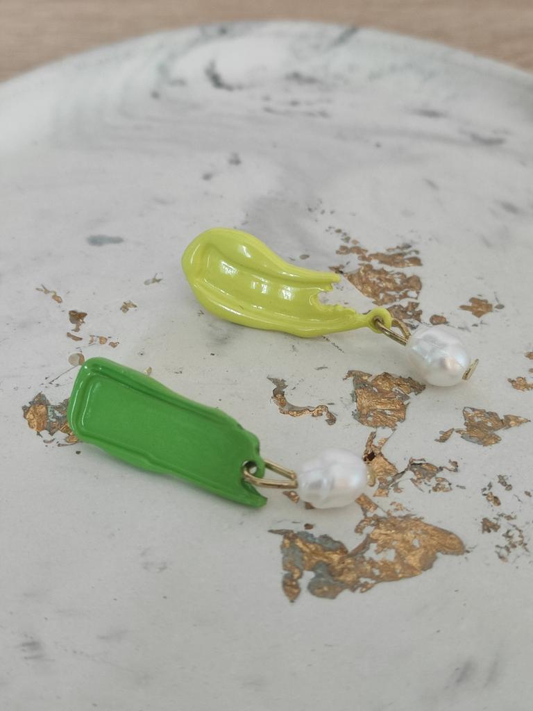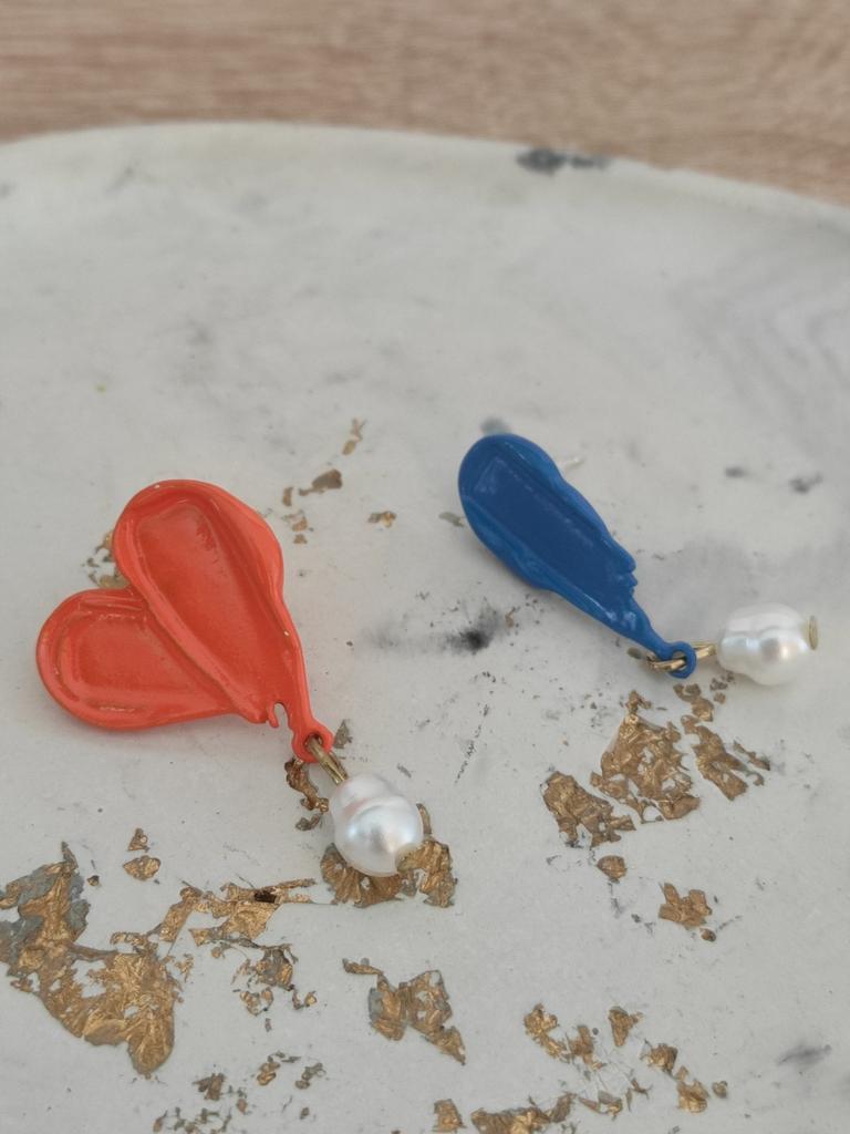 French Retro Oil Painting Colorful Asymmetrical Pearl Drop Earrings For Women Girls Unique Romantic Jewelry Gift