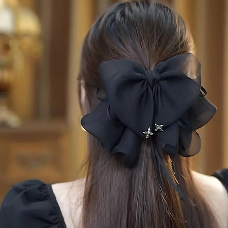 Elegant Tassel Black Three Layer Bow Hair Claw For Women Sweet Headband Hair Accessories