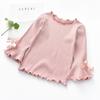 Autumn Spring Fashion Girl Long Sleeve T-Shirt with Ruffle Edges for Kids Soft and Warm Solid Color Children Casual Clothes Tops