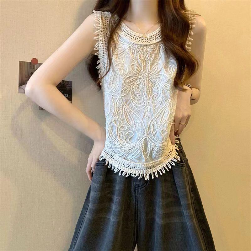 Niche Hollow-out Crocheted Knitted Camisole Women's Summer Tassel Short Sleeveless Tank Designed Top
