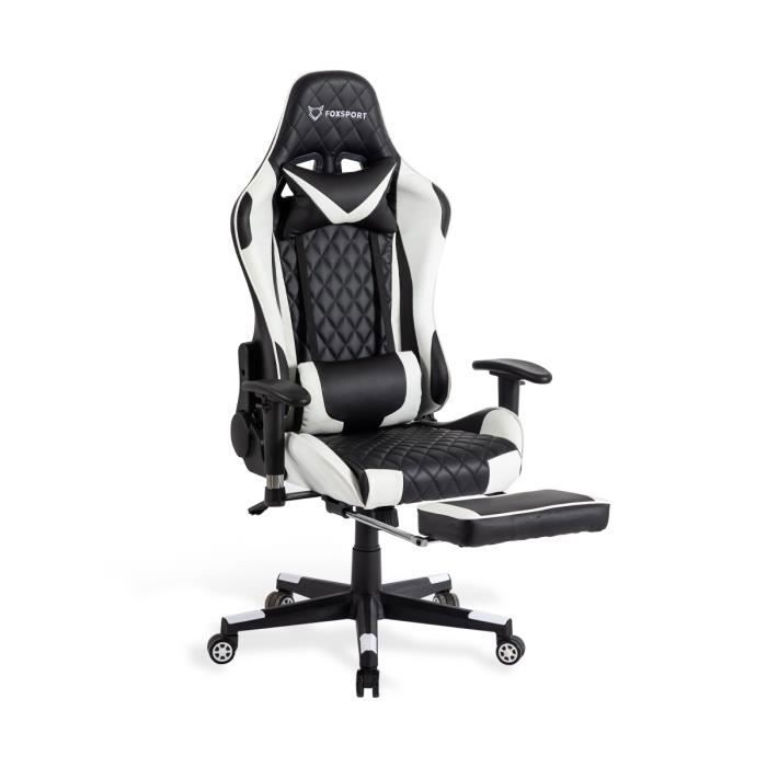 Fauteuil De Bureau - Gamer - Réglable - Repose-pieds - Coussin De Tête - Coussin Lombaire - Blanc