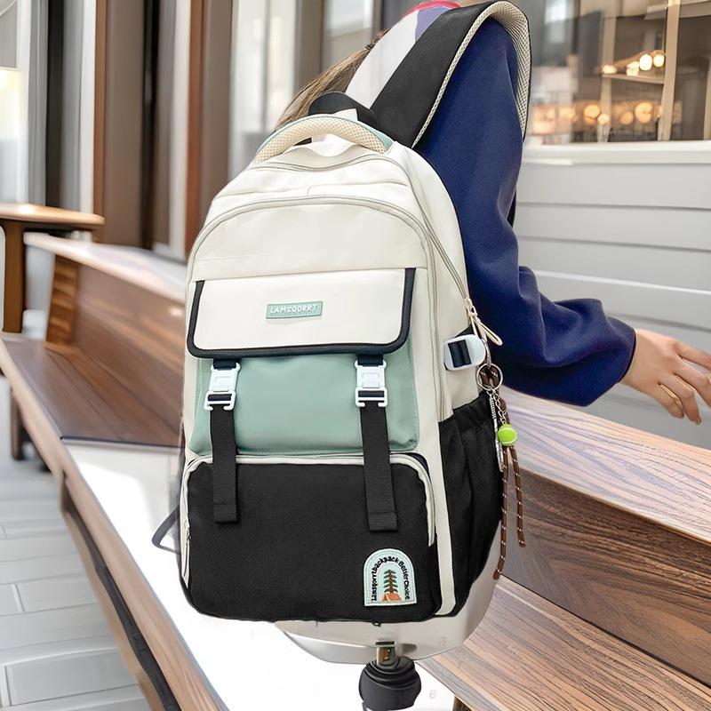New Student Schoolbag Junior High School High School Backpack Large Capacity Lightweight Leisure Bag Boys and Girls Splicing Schoolbag Fashion
