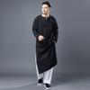 Men's Long Robe: 25% Hemp, 25% Linen, Ramie V-Neck, Solid Color Slit Zen Tea Attire