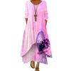 Spring Fall Dress with Pockets Vintage Flower Printing V Neck Irregular Layerd Hem Loose A-line Maxi Dress for Daily Work Party