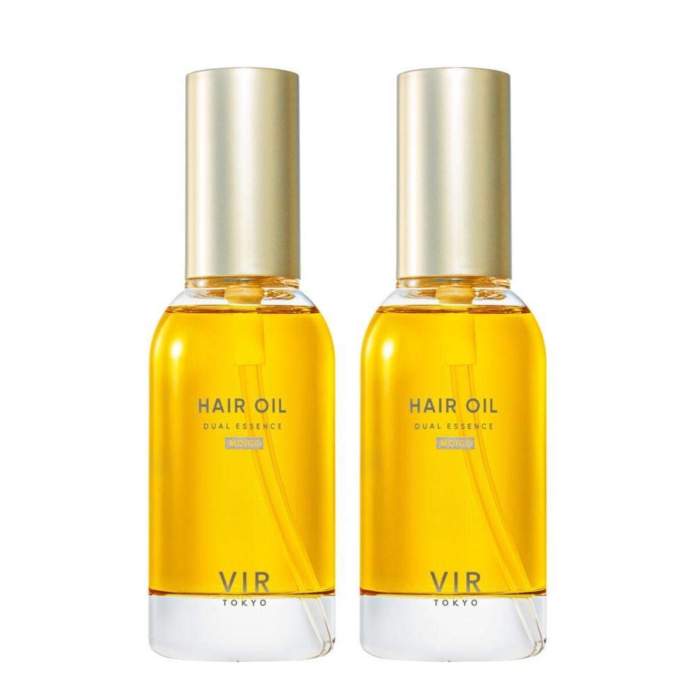 VIR TOKYO Styling Hair Oil Moist 100mL x 2 features a dual essence made of two layers that keep your hair shiny and hydrated while preventing damage. The unique 78:22 ratio of oil and essence layers provides needed moisture and repair for permed and long hair. The product includes heat protectant ingredients that shield hair from damage caused by blow dryers and sauna heat, resulting in resilient and healthy-looking hair.