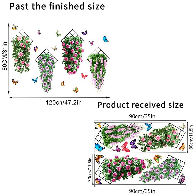 Butterfly Flower Vine Green Plant Self-Adhesive Waterproof Wall Stickers Living Room Bedroom Decorative Painting