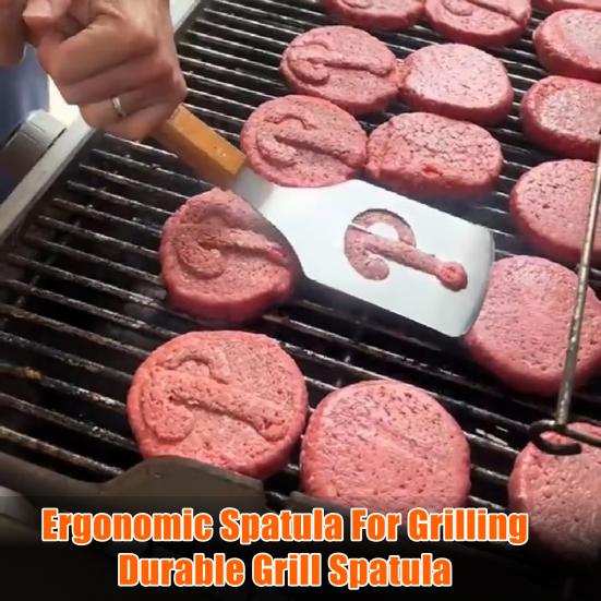 Grill Spatula with Wood Handle Stainless Steel Hamburger Patty Flipper Professional Hollow Grease Residue Reducing Spatula for Patties Bacon