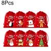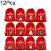 6/8/12Pcs Drawstring Gift Bags Red Green Cartoon Patterned 2025 Packaging Bags For Party Favors Velvet Christmas Candy Bag
