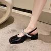 Jane Sandals Elastic Band Shoes Closed Toe 2024 Women's Suit Female Beige Strappy Heels Slip-on New Square Fashion Black