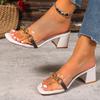 Square Heel Slippers Women Summer New Fashion Square Toe Open Toe Metal Chain Sheer Strap Non-Slip High Heels