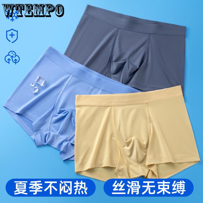 Men's Ice Silk Underwear Summer Solid Color Sports Type Breathable and Comfortable Antibacterial Flat Angle Underwear