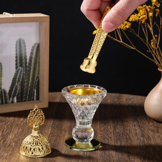 Constructed from high-quality artificial crystals, this burner guarantees longevity. The metal craftsmanship and Arabic-style design add a touch of sophistication to any decor. For added safety, the burner features a protective lid to contain ash and ensure secure incense burning. Elevate your ambiance with our exquisite incense burner today!