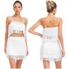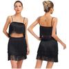 Womens 2 Piece Fringe Dance Set Adjustable Spaghetti Strap Crop Top Elastic Waist Tassel Skirt Club Party Costume