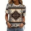 Summer Round Neck 3D Retro Ethnic Style Print Top Fashionable Casual Short Sleeved Women's T-shirts