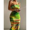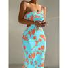 Summer Color-blocking Gradient Sexy and Fashionable Printed Shoulder Strap Hip-hugging Dress