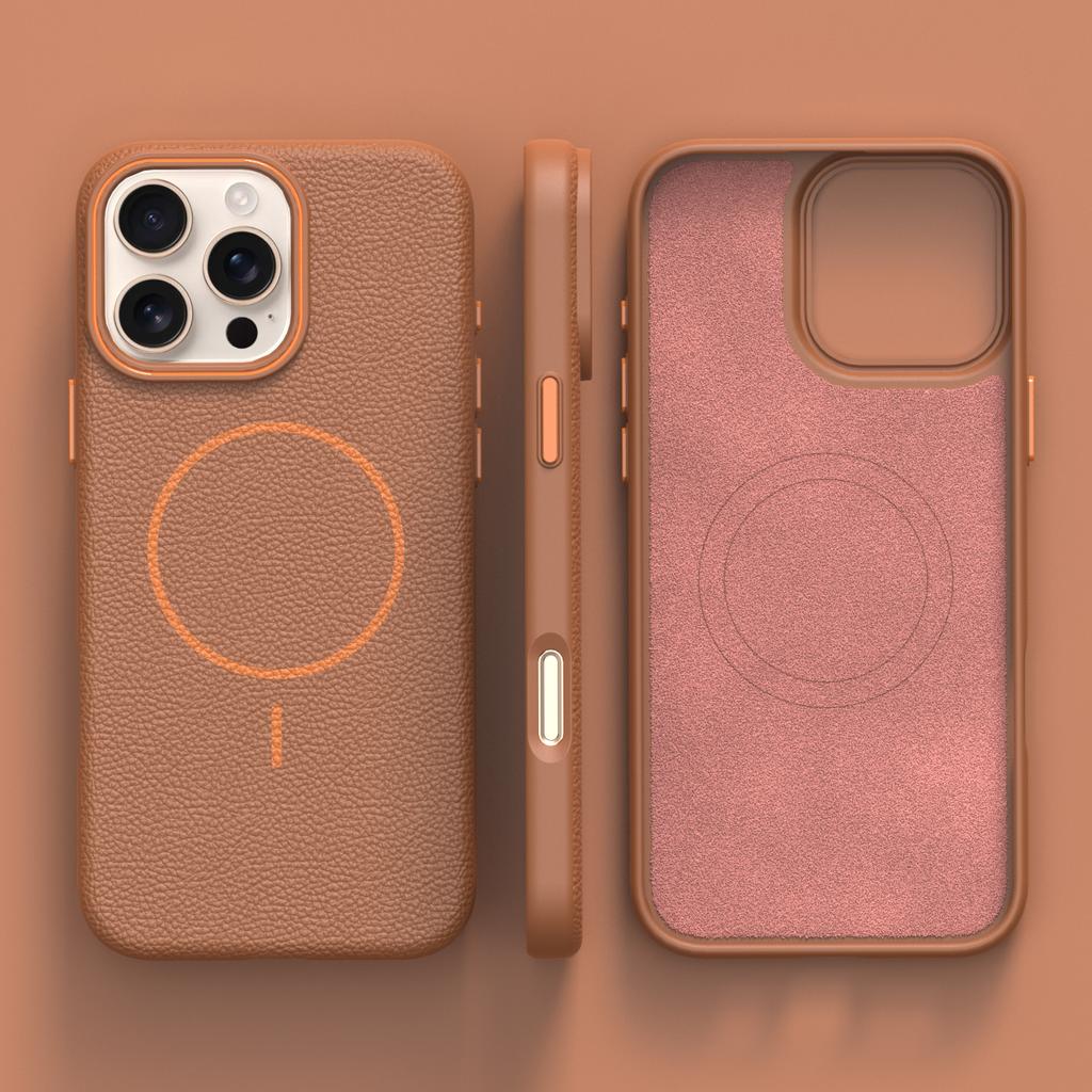 Litchi Patterned Leather Phone Case for IPhone 17 16 15 14 13 12 11 Pro Max Magnetic Magsafe Armor Flocking Cover