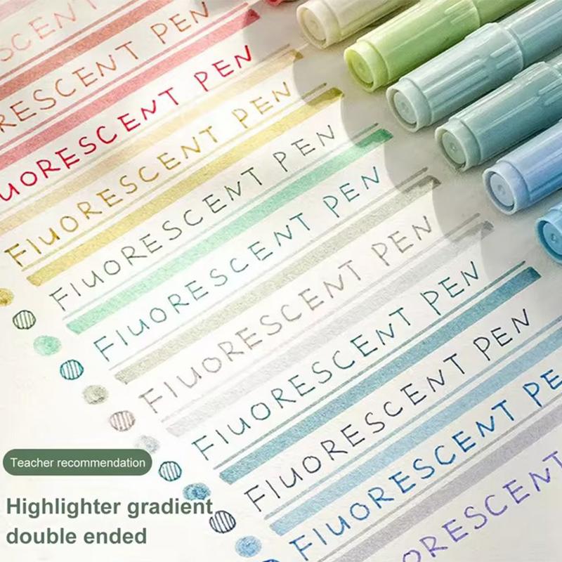4Pcs Highlighter Double Head Marker Pen High-Value Gradient Color Student Markers Cute Highlighters Stationery Supply