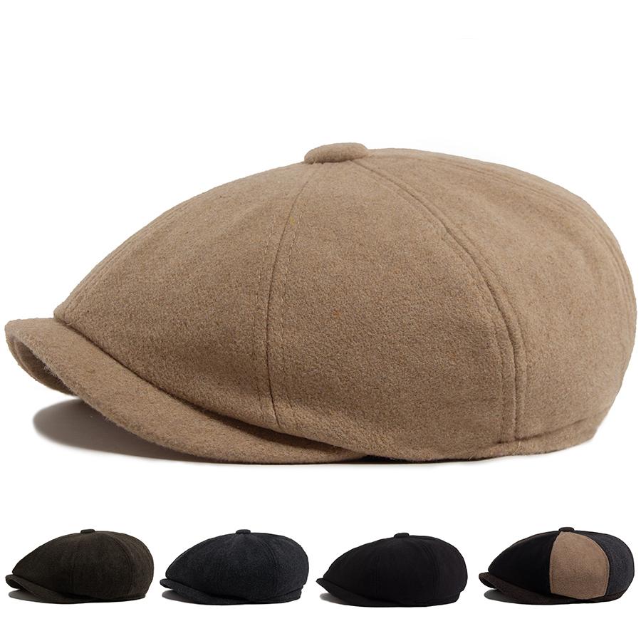 Winter Woolen Cloth Warm Beret Women Spring Autumn Solid Vintage Newsboy Cap For Men Retro Thick Elastic Women's Hat Unisex